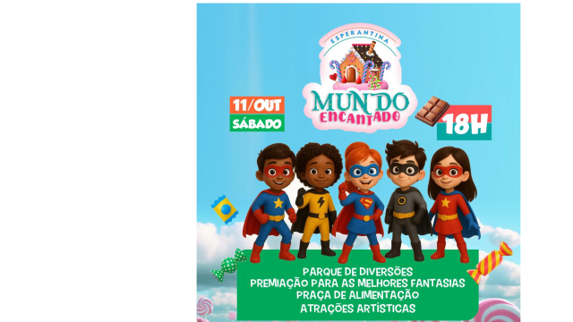 O Mundo Encantado 2025, tradicional festa em comemoração ao Dia das Crianças em Esperantina, já tem data confirmada. O evento acontecerá no próximo sábado, 11 de outubro, a partir das 18h, na Praça Leônidas Melo, e promete reunir centenas de famílias para uma noite repleta de diversão, magia e alegria.